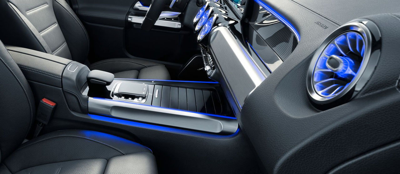 The interior lighting is provided exclusively by energy-saving LEDs. Their special spots of light and luminous surfaces combine function and emotion – they facilitate orientation and operation and make the interior more attractive.