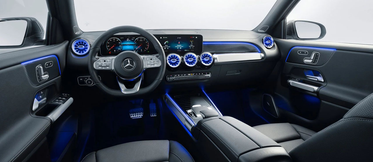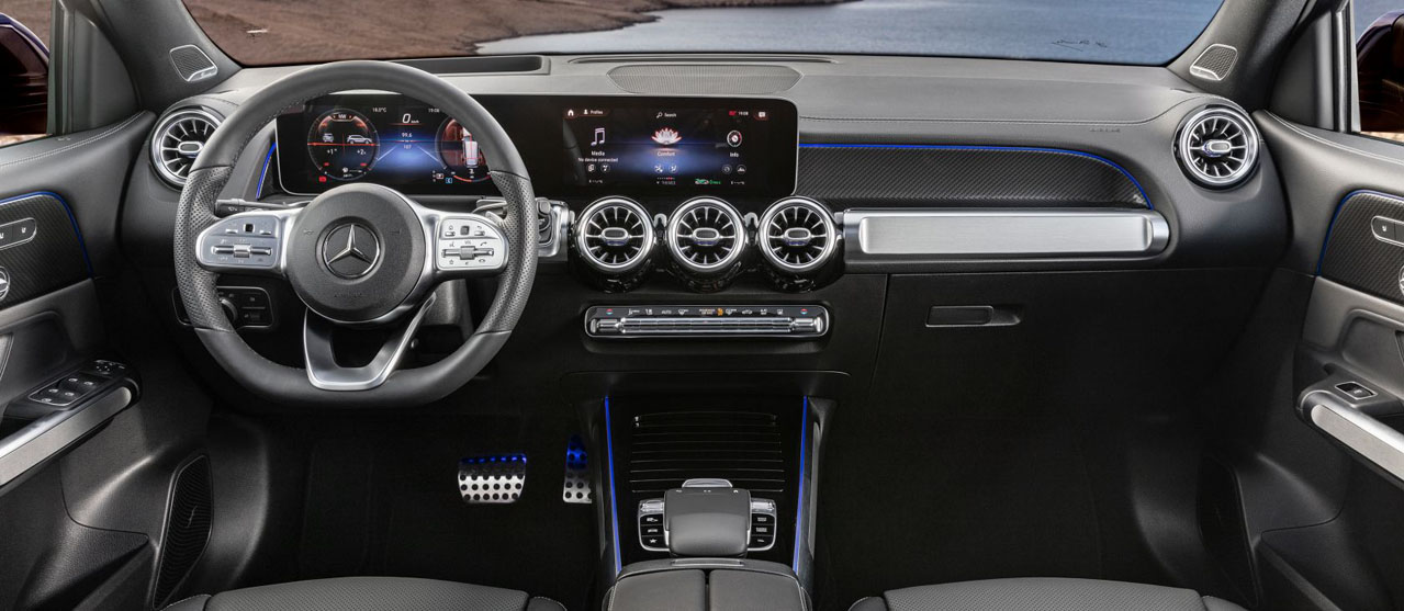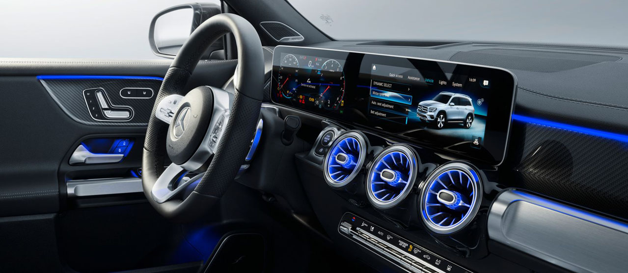 With the 3-spoke multifunction sports steering wheel, the driver has everything in hand in the GLB. The standard-fit Touch Control buttons on the left and right control the instrument display and media display. The different design and equipment lines are reflected in the design of the steering wheel.