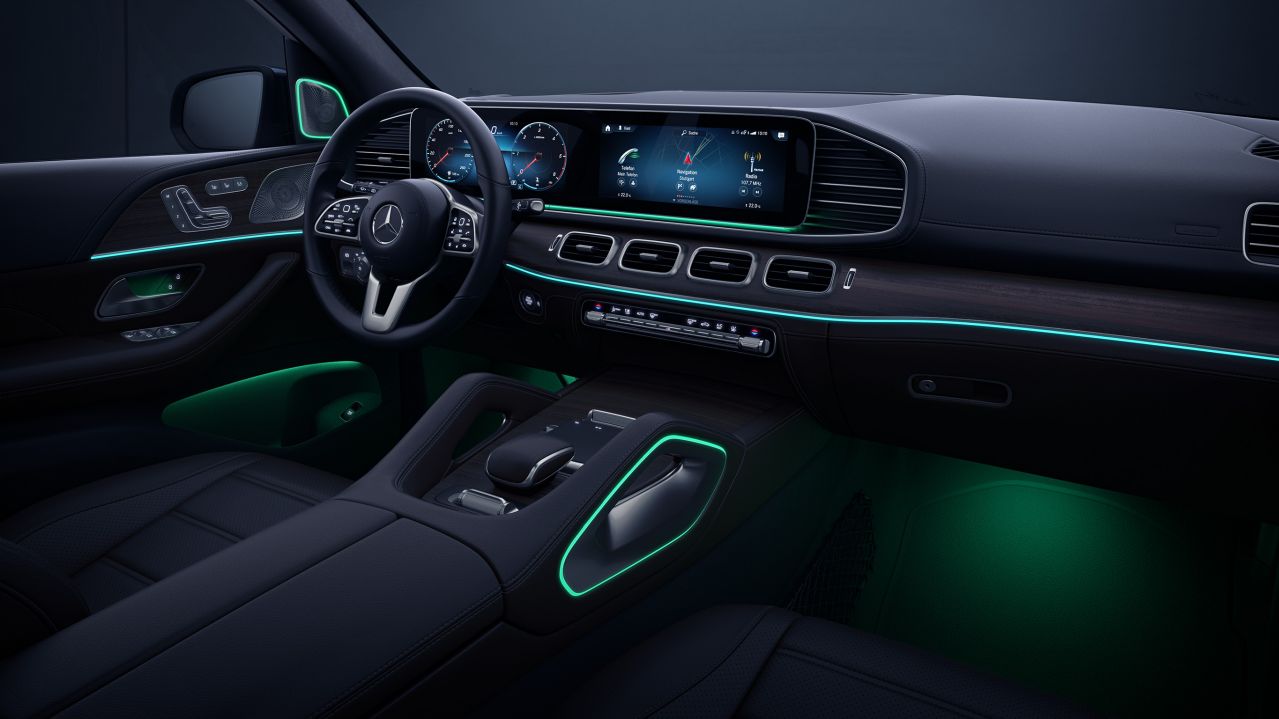 Showcase the interior according to your personal preferences or current mood. With a total of 64 colours, the ambient lighting gives you almost unlimited scope for lighting schemes, and has the right colour available for any situation. Additional light elements in white help to ensure good orientation.