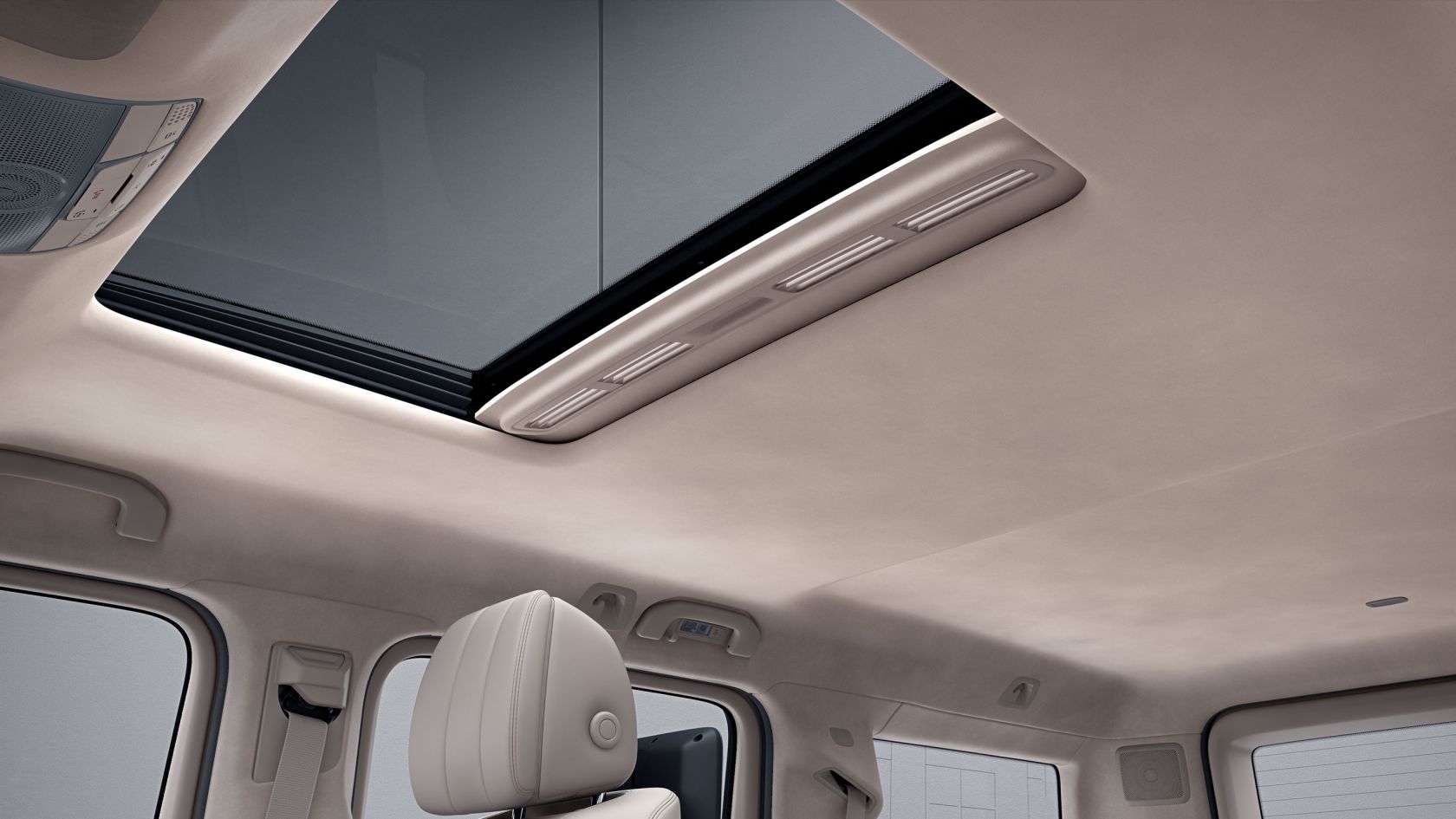 The electric glass sliding sunroof allows more light and air into your vehicle. Even when closed, and especially when open, it lends a brighter ambience to the interior. When the sliding roof is open, there is a pleasant flow of fresh air with no draughts. A movable headlining gives protection from the sun.