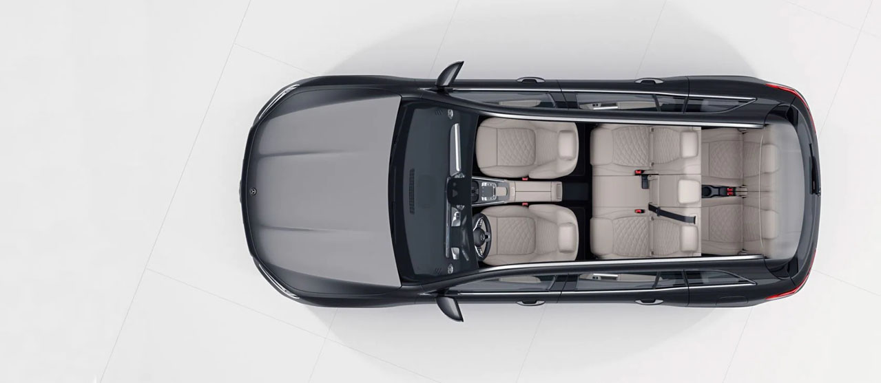 There is space for up to seven people in the GLB. The rear bench seat provides space for three occupants, and with the optional 3rd seat row it is possible to add two further individual seats as an option. These can be folded separately of each other and – like the 2nd seat row – feature attachment points for child seats.