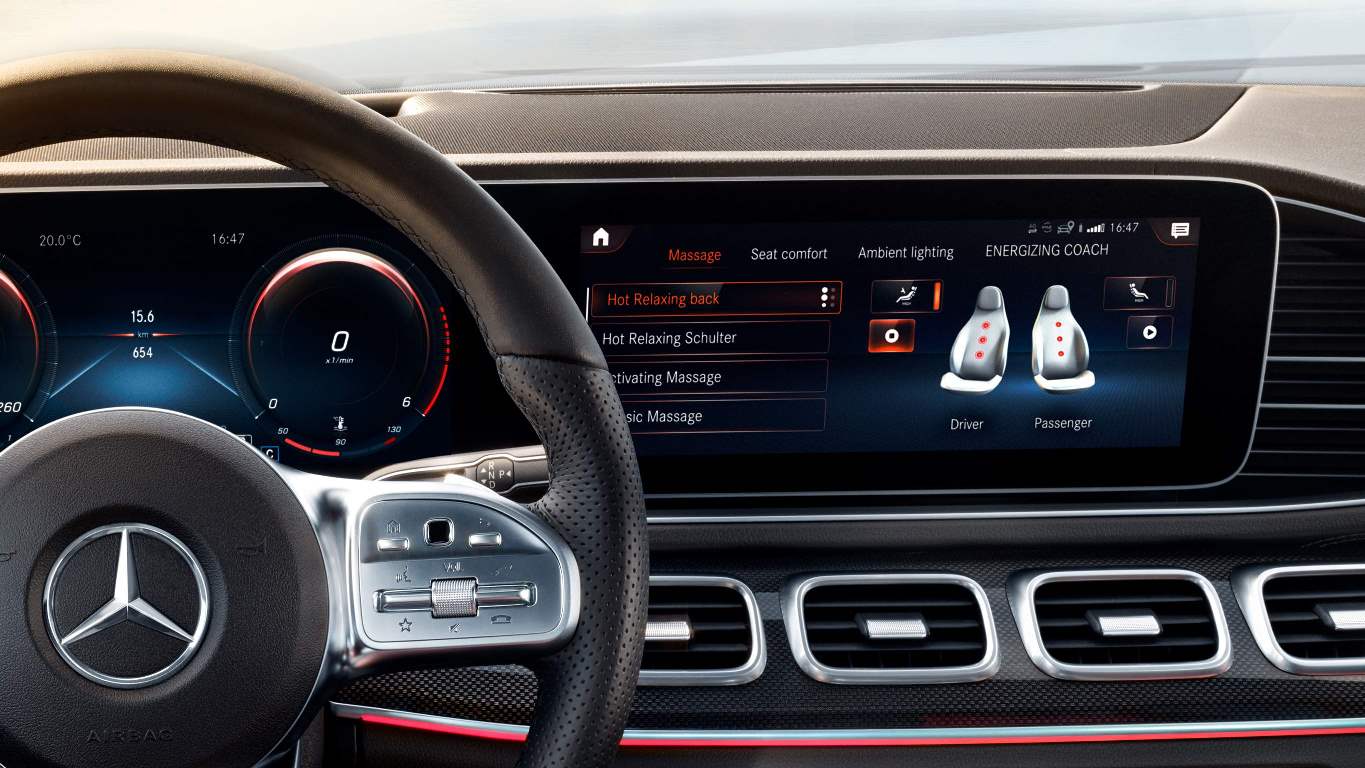 You can choose from 64 ambient colours as well as a range of different interior fragrances and massage programmes in the new GLE Coupé. Or activate an ENERGIZING programme such as “Vitality”, in which case all these comfort features are coordinated automatically.